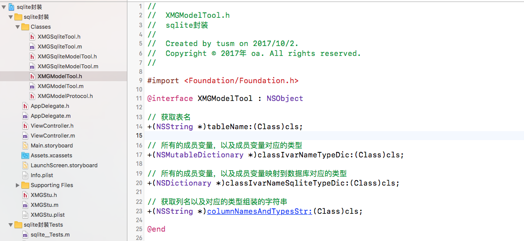 一,创建XMGSqliteModelTool类, 以及创建表的方法